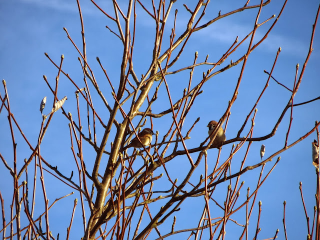 Edited to add....Thank you to Louise who identified the little birds I called finches . They are rather rare Tree Sparrows.....no wonder I didn't immediately recognise them and how lovely to think there are some living happily in this area.