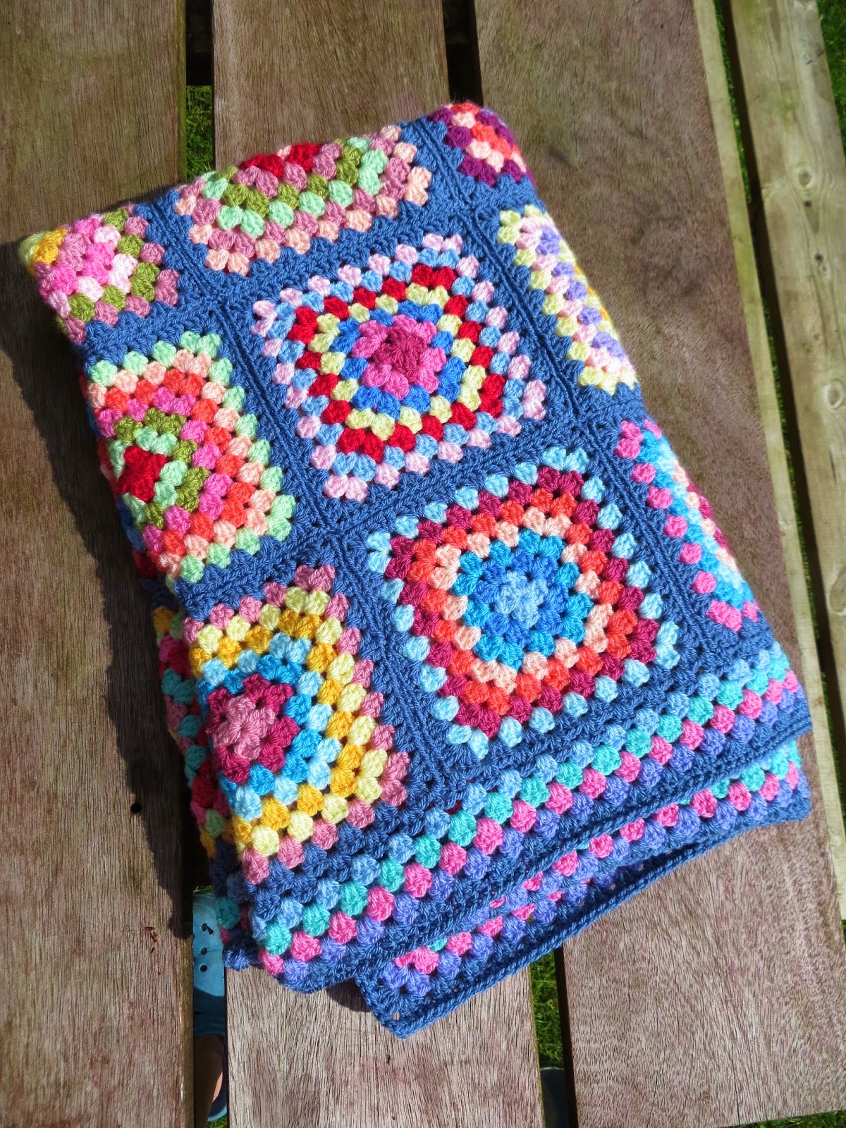 Eleven months ago , on a rainy May morning, I sat in the conservatory and started this colourful granny square blanket............