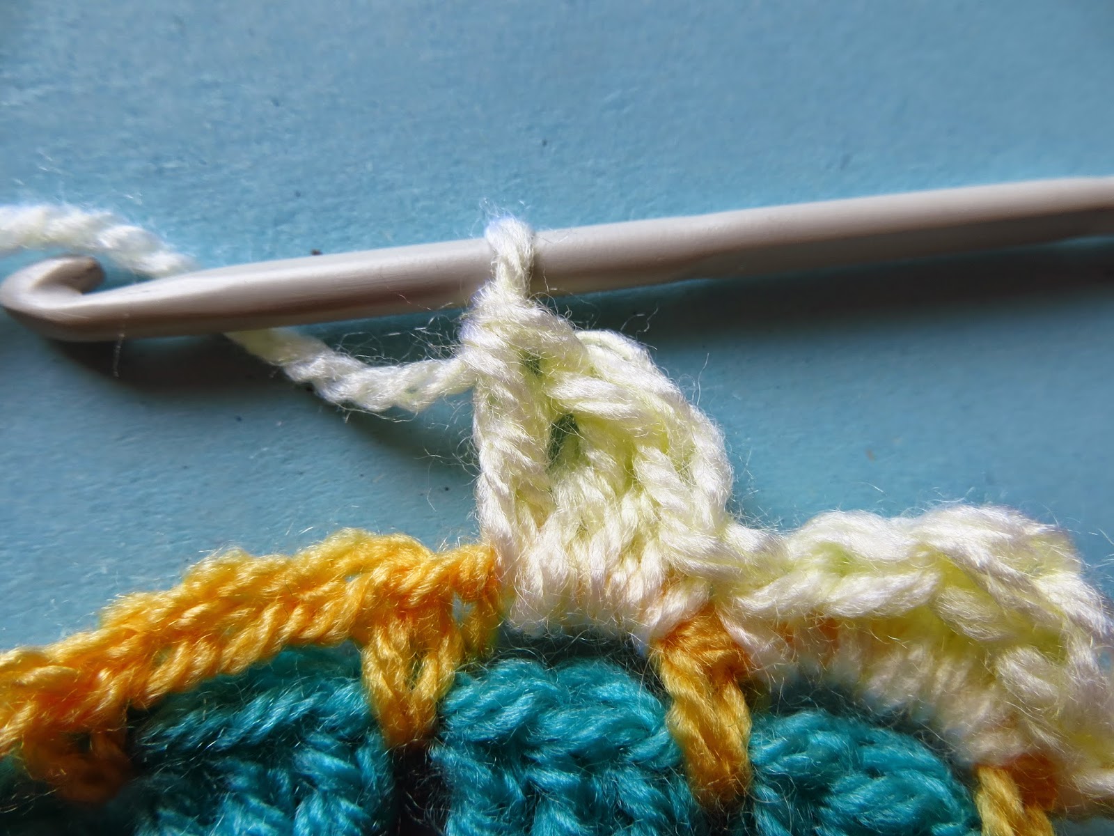 Attach a a new colour and chain 2 counts as 1 hdc..........