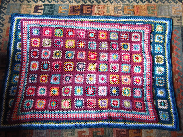 ReplyDeleteWell done, what a lovely blanket, great coastal colours. I'm sure deep down he thinks it's great, and will treasure it forever because his mum made it for him! I have a similar squares blanket lurking in my WIPs corner for the past few years. I really must finish mine too xx