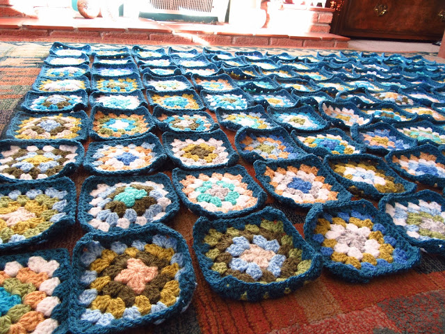 ReplyDeleteYou can't beat a granny square blanket,can you? Your colours are really beautiful together and remind me of seaweed and rock pools as well as the seaside itself. Thanks for your 'how to make a flat border for a granny square blanket', it got me out of quite a pickle with one of my blankets a couple of years ago!