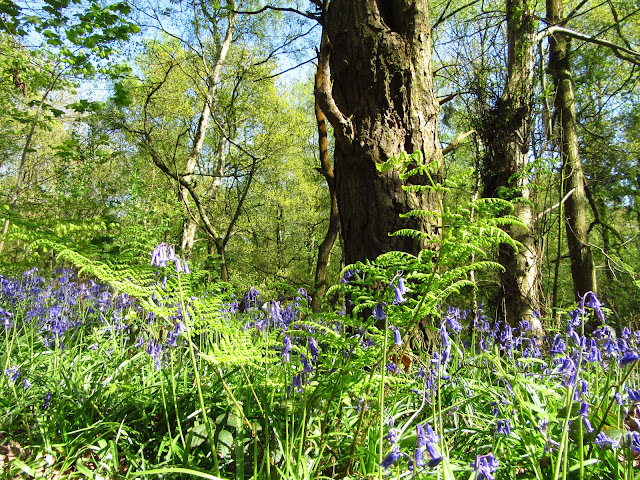 This simple bench had a brief but touching memorial...to a lady who "loved the Bluebells"